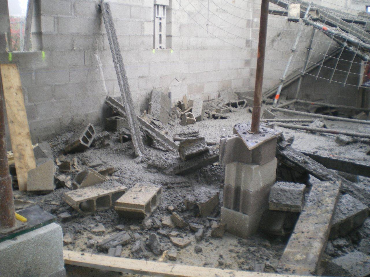 Alors, vous voulez dire que la destruction dans cette photo a été causée par une sottise d'un des travailleurs? A mon avis il me semble que le bâtiment a été excavé, mais ce n'est pas moi qui ai pris la photo. Toutefois ça a dû être une grande sottise qu'il a faite, j'imagine qu'il sera doué au dynamitage.