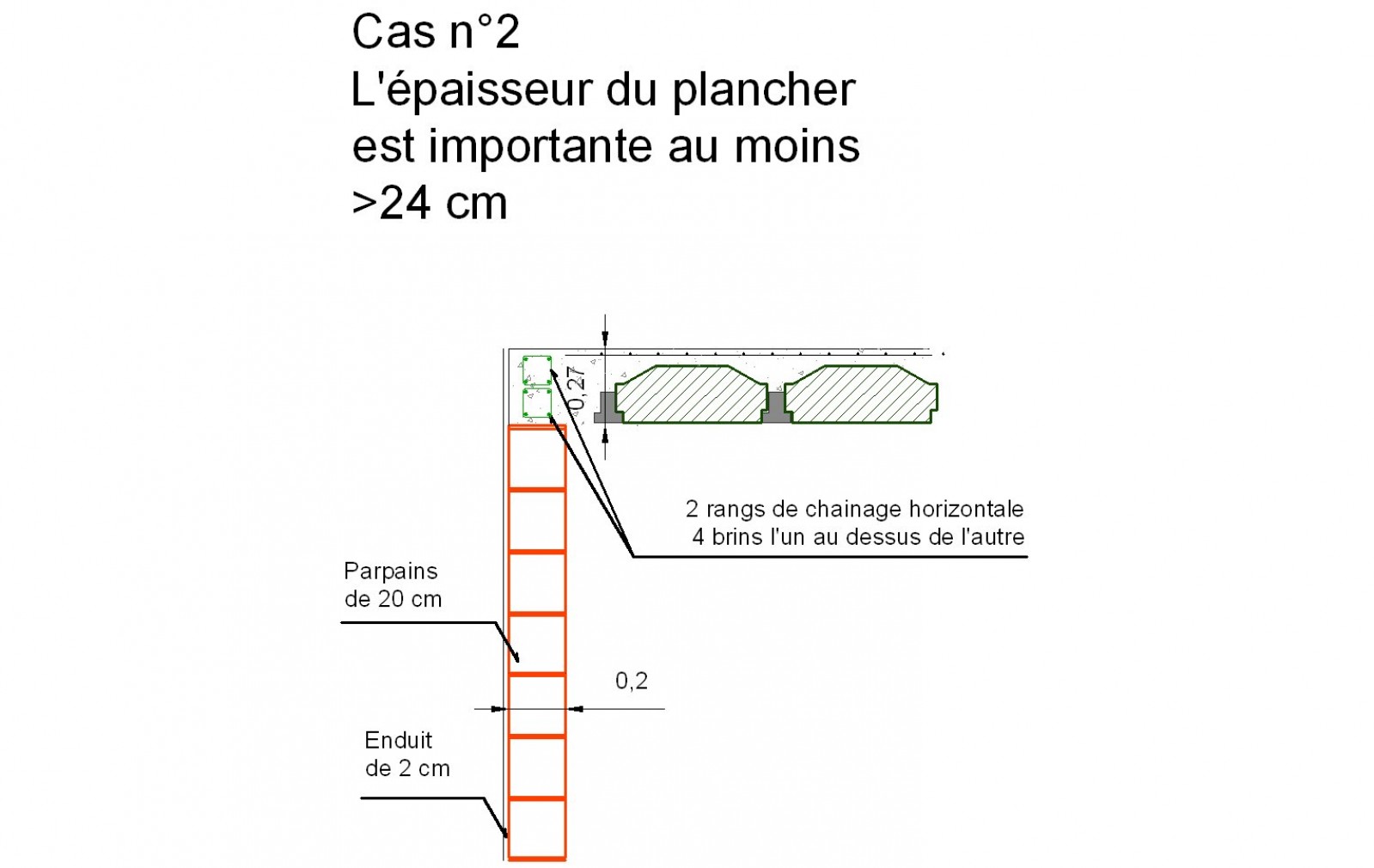 Cas n°2 : cette fois ce n'est pas le mur qui est plus épais que la moyenne mais la hauteur du plancher