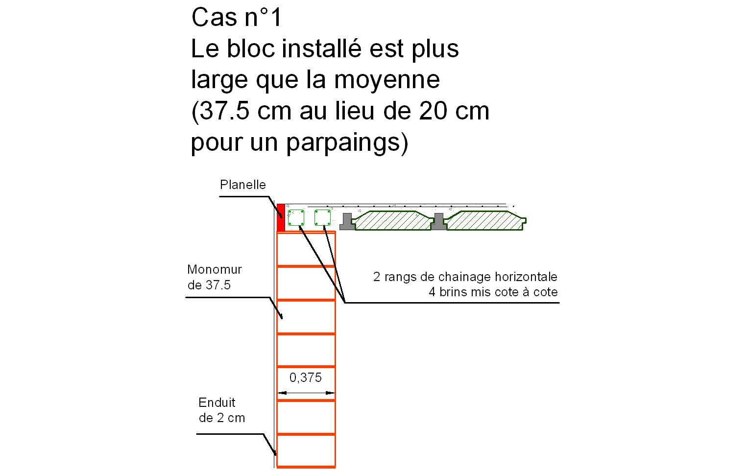 Cas n°1 : choisir son chainage périphérique quand son mur est assez épais (exemple avec une monomur de 37.5 cm)